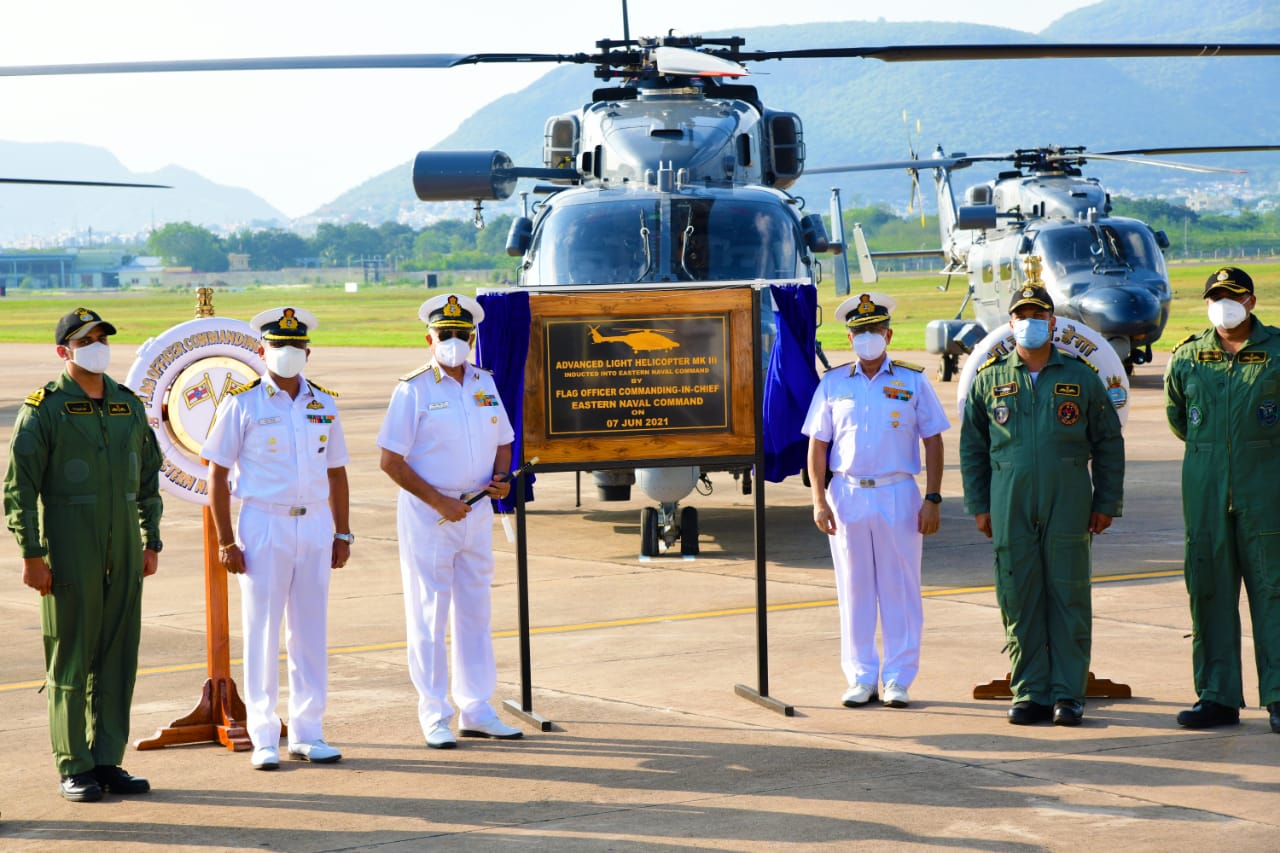 The induction ceremony of ‘322 Dega Flight’ was held in the presence of Vice Adm Ajendra Bahadur Singh, AVSM, VSM Flag Officer Commanding-in-Chief, Eastern Naval Command (ENC) with three indigenously built Advanced Light Helicopters (ALH) MK III helicopters flying into Naval Air Station, INS Dega on 07 Jun 21. With the induction of these Maritime Reconnaissance and Coastal Security (MRCS) helicopters, the ENC got a major boost towards enhancing the capabilities of the force, in pursuit of the maritime interests of the nation. These helicopters, built by Hindustan Aeronautics Ltd, are state-of-the-art flying machines and constitute a major step in our quest for “Atma Nirbhar Bharat”.