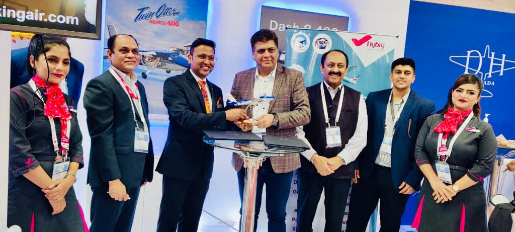 The letter of intent was signed by Captain Sanjay Mandavia , CMD Flybig and Yogesh Garg, Director, Sales – Asia Pacific, De Havilland Aircraft of Canada. and exchanged at their stall at Wings India 2022 Show.