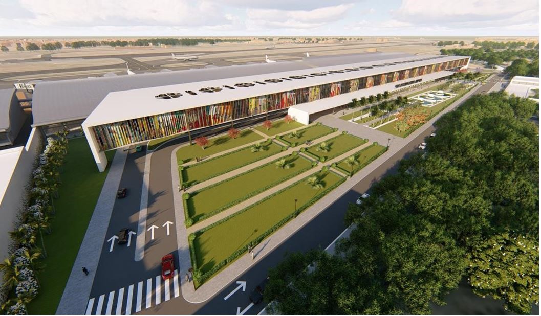 The swanky new integrated terminal building (including old building) will be centrally air conditioned with provision of 10 passenger boarding bridges, 72 Check-in Counters and In-line Baggage handling system. The building will be an energy efficient building with Four-Star GRIHA rating. Provision of 36000 sq. ft. space for F&B and retail outlets has been reserved for refreshment/pleasure of the passengers. A huge canopy on city side of the existing building & new building together will give a magnificent look to the airport from city side.