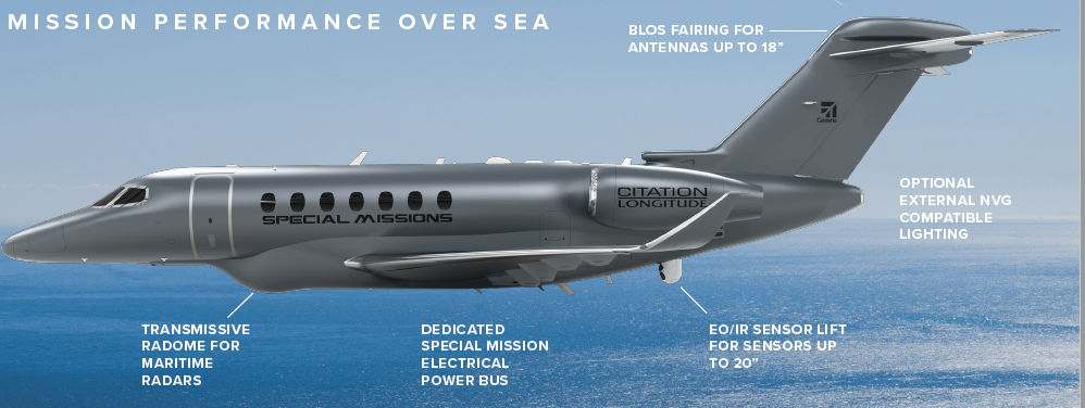 Home LATEST NEWSBUSINESS AVIATION Textron Aviation Special Missions Introduces Cessna Citation Longitude Maritime Patrol Aircraft